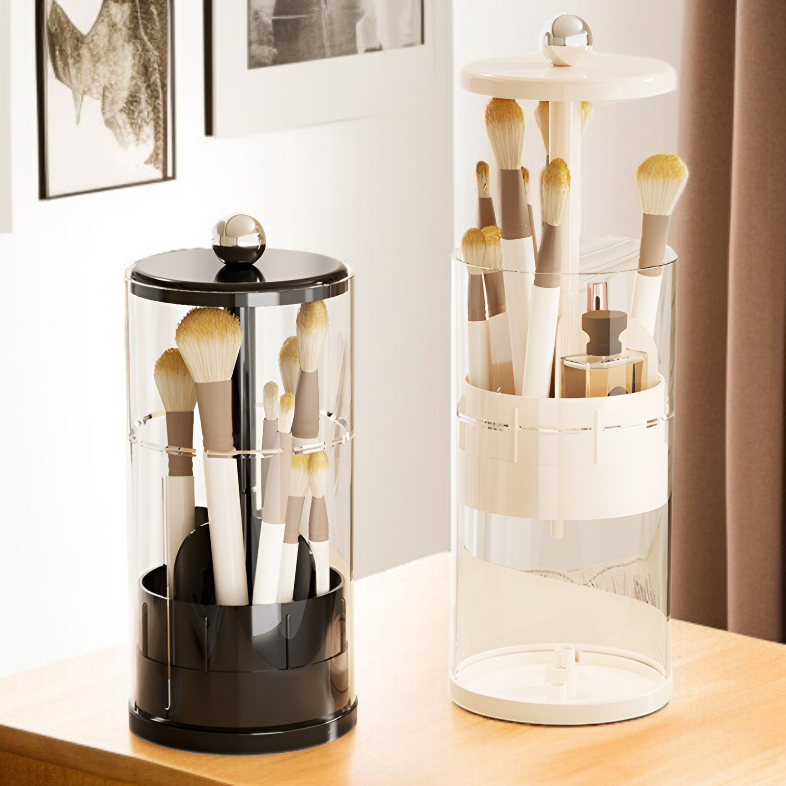 ● ブラシ収納チューブ付きで、メイク道具の衛生管理も万全。細かいアイテムもきれいに分類できるので、毎日の美容習慣がもっと快適になります。